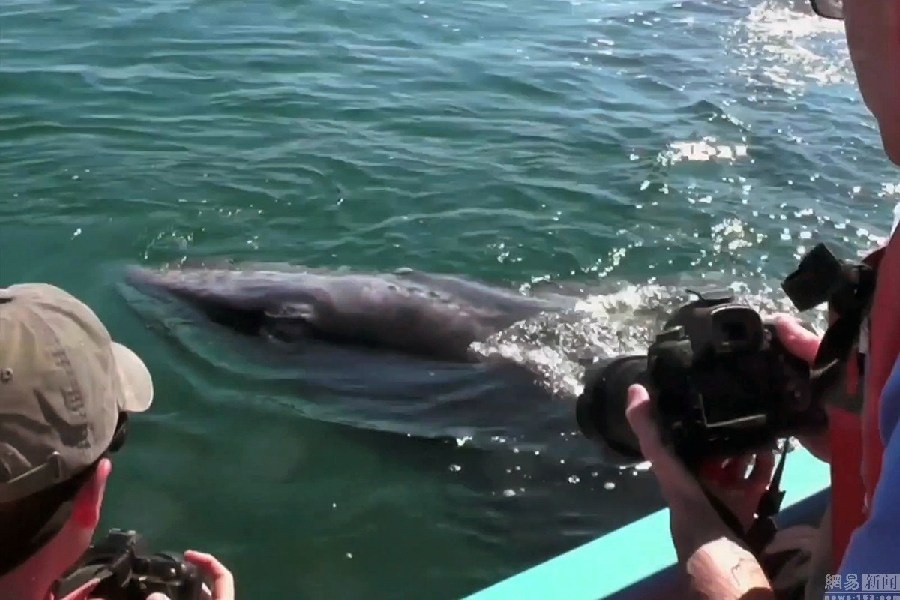 游客乘船偶遇灰鲸群 鲸鱼“主动示好”(高清组图)