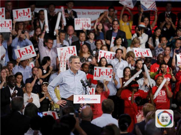 图为杰布·布什2015年6月15日正式宣布参选(图片来源:新华/路透)