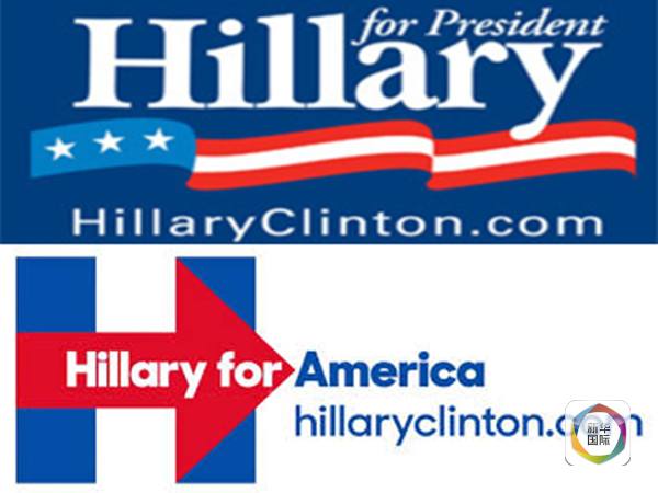 希拉里2016年选举的标志(下)比2008年(上)简化得不是一点点