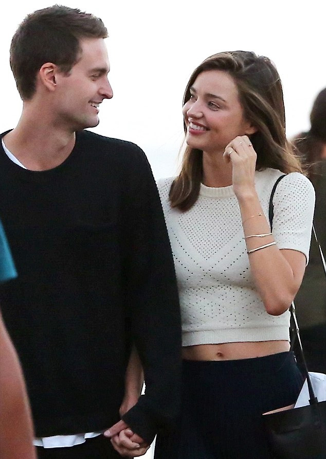 艾文·斯皮格尔是Snapchat联合创始人兼CEO,俩人手牵手漫步在海滩,不时的眉目传情。