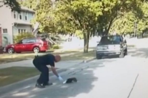 这一幕被警车的车头摄影机给记录下来,泰勒的同事打趣的说:“能帮助到它很好啊!我们都笑翻了!”