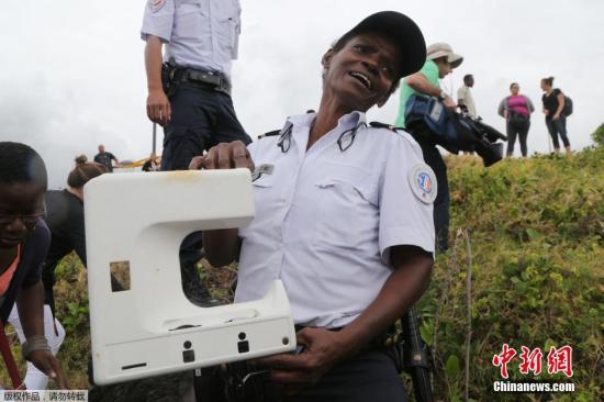 当地时间2015年8月4日,法属留尼汪岛圣但尼,警察在当地发现一块塑料残片。近日在西南印度洋的法属岛屿留尼汪岛的海岸边发现了一块机翼残骸,并且已经被有关部门证实是属于一架波音777机型的部件,这样就大大增加了其属于失踪已久的马航MH 370航班残骸的可能性。
