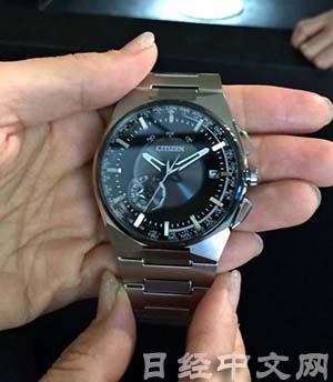 西铁城的高档光动能电波表“Satellite Wave” 西铁城在2015财年(截至2016年3月)计划投入史上最高的240亿日元广告费,较上一年增加约15%,并将加大5万日元以上的中、高档手表的宣传力度。2014年11月,西铁城在纽约开设旗舰店,并计划在美国增加电视及户外广告等。此外,西铁城还将在全球机场宣传统一的品牌形象。