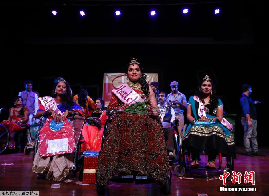 当地时间2014年11月24日,印度孟买,当地举行轮椅小姐选美大赛,共有来自全印度的7名佳丽参加第二轮角逐。