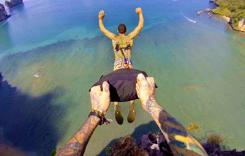 据英国《每日邮报》8月4日报道,美国旧金山28岁男子乔什·米拉蒙特(Josh Miramant)日前在泰国通赛(Ton Sai)的悬崖进行悬浮跳伞。在挑战中,米拉蒙特在背部穿上多个金属钩,其与降落伞相连,米拉蒙特就这样从悬崖上跳了下去。