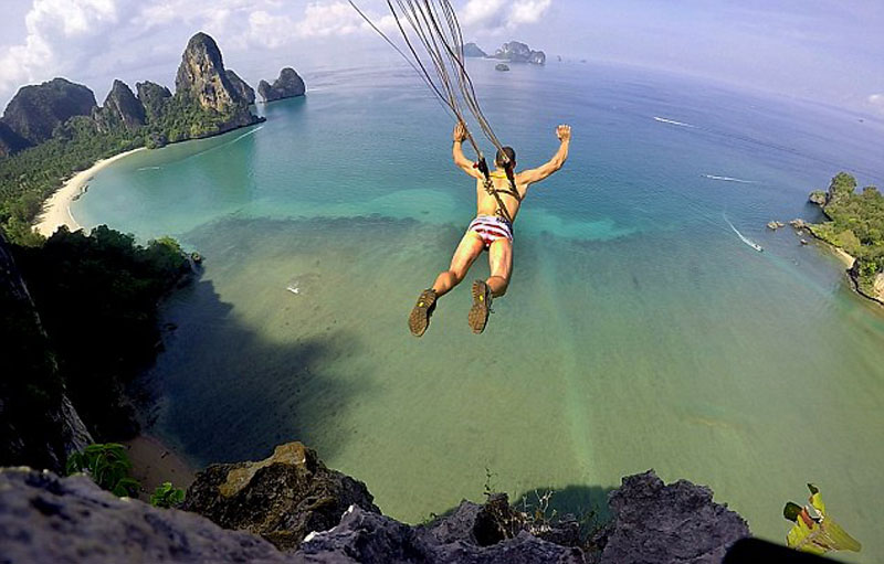 美国男子背穿金属钩玩悬浮跳伞(高清组图)