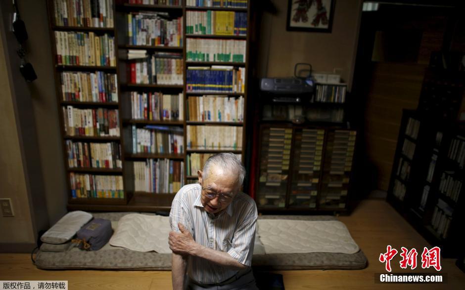 当地时间2015年7月30日,日本福岛,89岁的广岛原子弹爆炸幸存者Akira Yamada在家中接受路透社采访。Yamada是福岛的原子弹幸存者协会的领导人,他的家在广岛核爆爆炸点只有2.5公里。