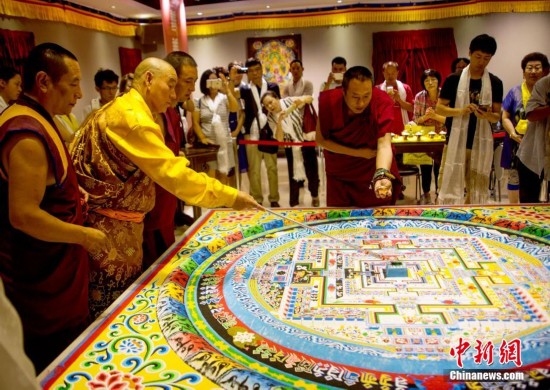 原标题:神秘坛城沙画扫毁后投放渤海湾(组图)
