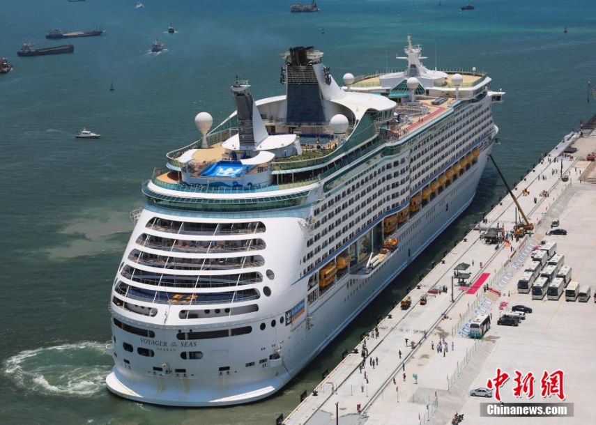 8月8日,海南三亚,美国皇家加勒比公司旗下“海洋航行者号”豪华邮轮首航三亚,停靠在三亚凤凰岛国际邮轮港。这艘总吨位13.8万吨的邮轮是全球十大邮轮之一,是三亚迄今为止靠泊吨位最大、带来旅客最多的豪华邮轮。“海洋航行者号”本次航线为“香港-三亚-越南岘港-香港”,预计停靠10个小时,于当晚22时离港。 中新社发 尹海明 摄