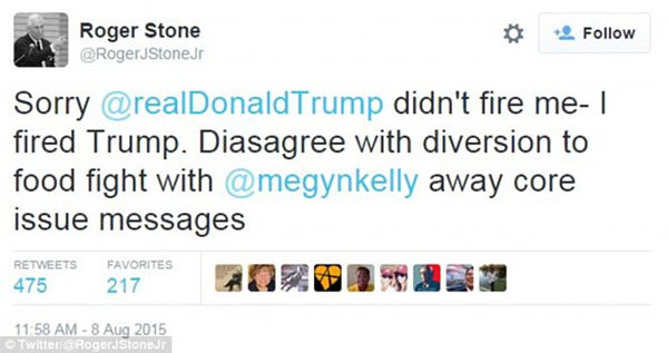 新华网北京8月9日电 据新华社“新华国际”客户端报道,正所谓“no zuo no die”,一贯大嘴巴的美国共和党总统参选人、地产大鳄特朗普终于要为自己的出格言论付出代价了。8日,他和多年密友、自家竞选团队主力罗杰·斯通分道扬镳。