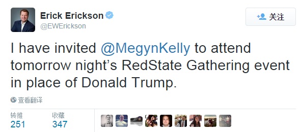 更惨的是,特朗普还因为“冒血门”失去了共和党一个主要集会的邀请函。保守派网站RedState主编埃里克森称,8日在亚特兰大举行的共和党人聚会取消了对特朗普的演讲邀请,转而邀请梅根·凯利出席。