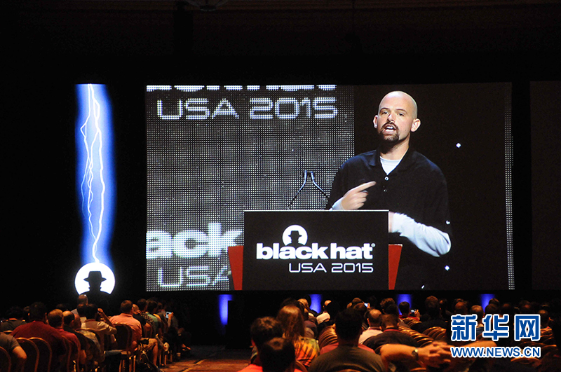 黑客在2015年黑帽大会上演讲。(新华社记者马丹摄)