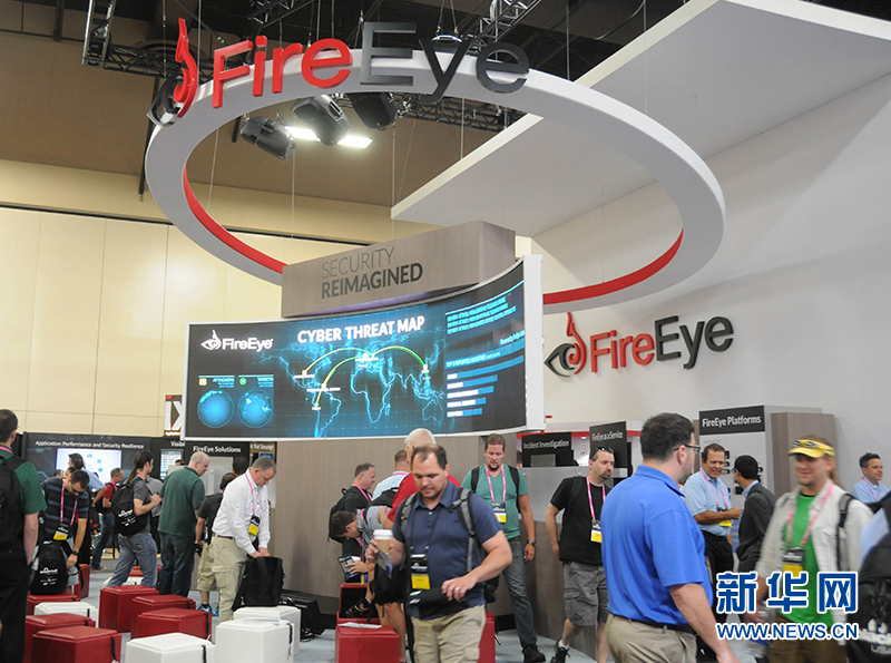 信息安全产品供应商在黑帽大会上推介安全技术。图为美国“火眼”公司展台。(新华社记者马丹摄)