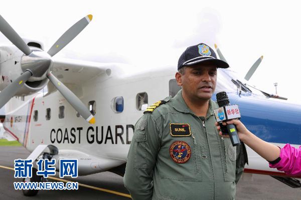 8月10日,在毛里求斯大港附近一个机场,参与搜寻任务的警官向新华社记者介绍搜寻情况。毛里求斯副总理杜瓦尔10日接受新华社记者采访时表示,毛里求斯将继续搜寻MH370残骸。 新华社记者 潘思危 摄