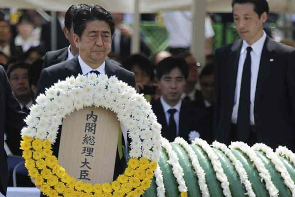 日本首相安倍晋三在长崎参加纪念活动。