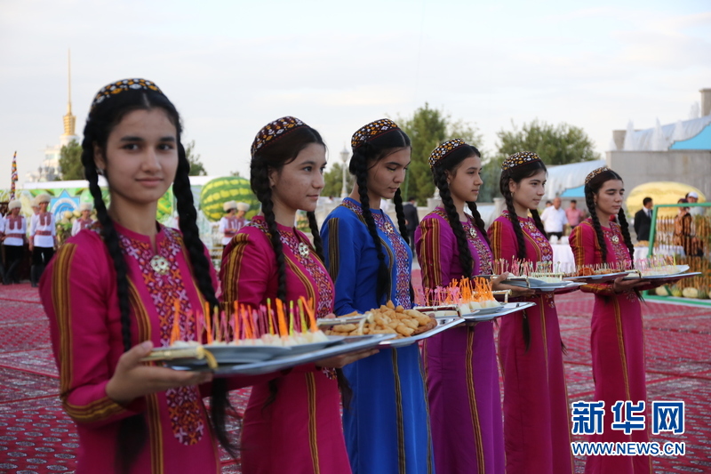 土库曼斯坦9日在首都独立公园举行活动,隆重庆祝一年一度的瓜节。来自马雷州的戈列诺夫以31公斤重的大西瓜获得“西瓜王”称号,达绍古斯州的努拉科夫以39公斤重的南瓜夺得“南瓜王”称号。(卢敬利摄)