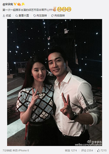 宋承宪还在微博中写道:“第一次一起携手出演的综艺节目非常开心!!!!!”
