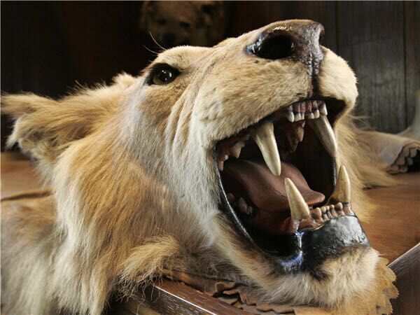 图为美国某探险俱乐部陈列室里展出的狮头,这头狮子是酷爱狩猎的美国前总统西奥多·罗斯福20世纪初在东非打猎的猎物。
