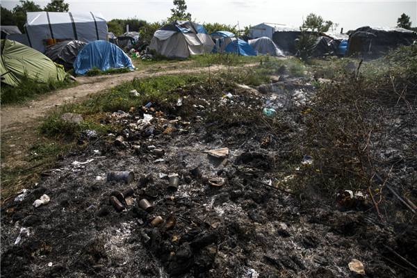 8月6日在法国北部城市加来拍摄的一个叫做“丛林”的非法移民聚居点。
