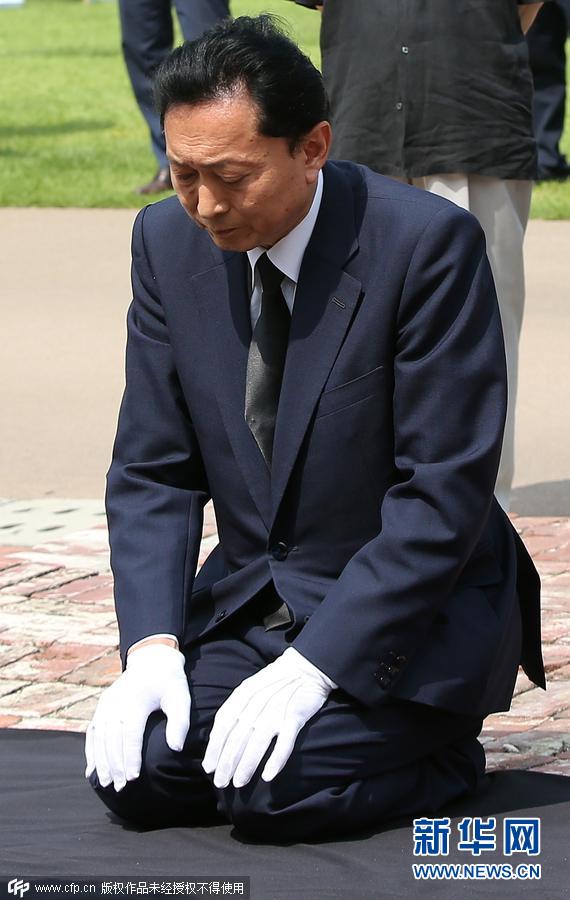 日本前首相鸠山由纪夫在韩烈士碑前下跪谢罪(高清组图)