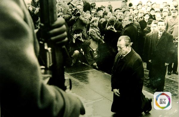 1970年12月7日,时任联邦德国总理维利·勃兰特在华沙犹太人殉难纪念碑前敬献花圈后下跪,他在湿冷的石阶上保持下跪姿势一动不动达半分钟。同一天,勃兰特与波兰签署《华沙条约》,保证两国间不使用武力,德国接受战败后划定的领土边界线。