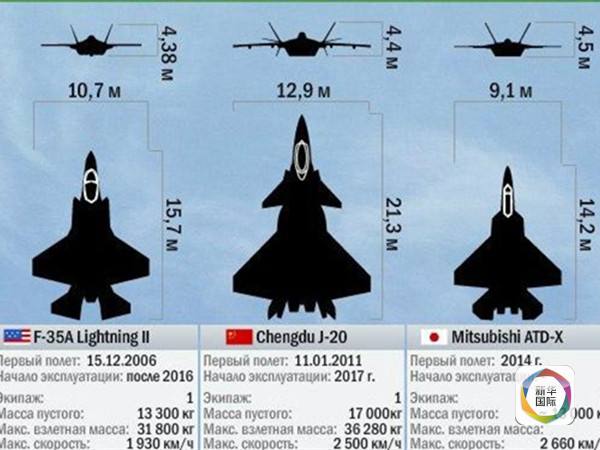 (美国F-35,中国歼-20,日本“心神”大小对比)