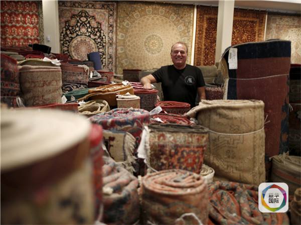 在美国洛杉矶经营波斯地毯26年的老板赫尔米站在他的地毯中间。2010年以后,美国禁止他从伊朗进口地毯。图片来源:新华/路透