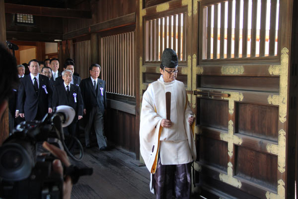 此前,据日本共同社报道称,日本“二战”战败70周年当天,日本首相安倍晋三将不会参拜靖国神社。这体现出他对中国和韩国存有一定的顾虑,但他已通过亲信、自民党总裁特别助理萩生田光一向神社供奉了“玉串料”(祭祀费)。