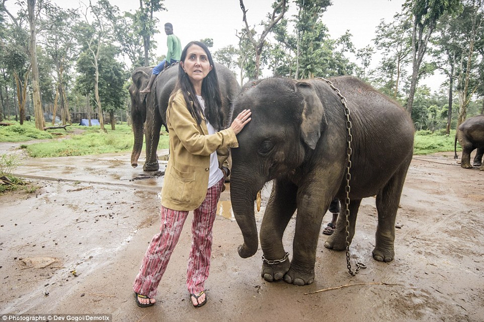 野生动物SOS组织已经同意,如果大象们被释放,将取缔所有的大象训练营。上图是利兹 琼斯正在安慰一头小象,而驯象师却骑着另一头大象的情景。(网站截图)