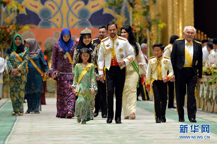 文莱苏丹和苏丹后率领皇室成员和宾客在生日晚宴上。(报道员杰弗里·黄摄)