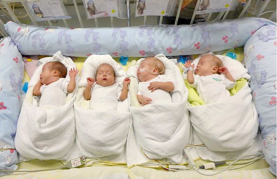 安内格雷特此前已有13个孩子,在小女儿的劝说下,她接受了试管受精,怀上了四胞胎。四胞胎在德国柏林的沙里泰医院出生,最小的孩子只有1磅7盎司(约652克),最大的也不过2磅2盎司(约964克)。经过3个月左右的治疗和观察,医生认为孩子们可以出院,并能健康地活下去。