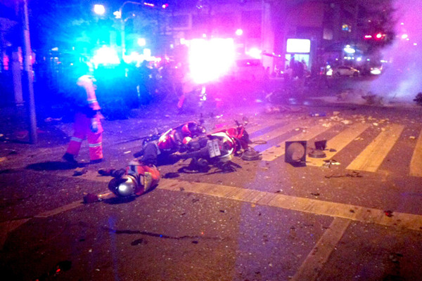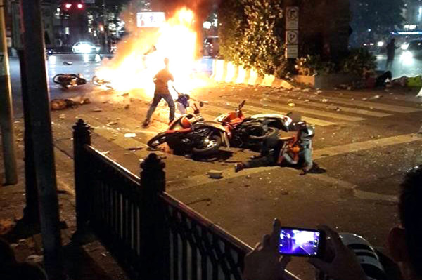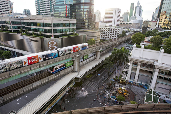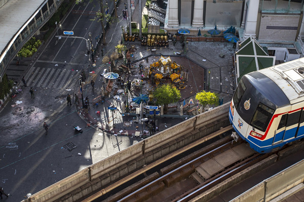 当地时间2015年8月17日,泰国曼谷,当地商业中心发生爆炸。 据警方和救援人员消息称,爆炸导致12人死亡。 据警方和救援人员消息称,爆炸导致12人死亡。2015-08-17 21:55:21