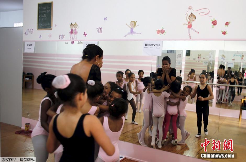 孩子们很喜欢舞蹈老师Joana de Assis,课后将她团团抱住。