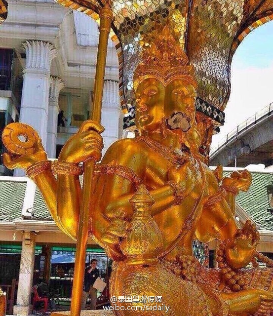 曼谷爆炸致四面佛受损 泰国工人连夜修补(组图)