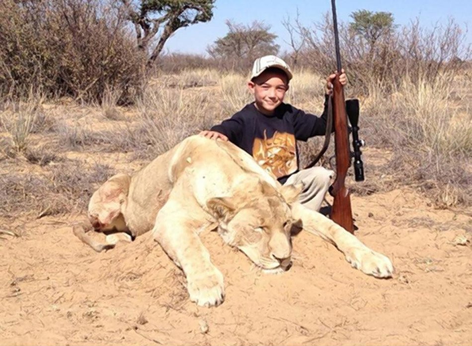 据外媒报道,美国印第安纳州一位猎人阿伦·塔普利(Allen Tarpley)近日在社交网站上晒出了自己7岁儿子第一次猎杀狮子的照片,这一举动引发舆论哗然,瞬间收到众多批评的声音。他说:“不过杀了一只狮子,就有一堆人发疯。”阿伦补充说:“外界的人不懂狩猎。”他坚持认为自己没有错。这是阿伦晒出的7岁儿子猎狮照,并配图说:“我7岁儿子杀的第一只狮子。”