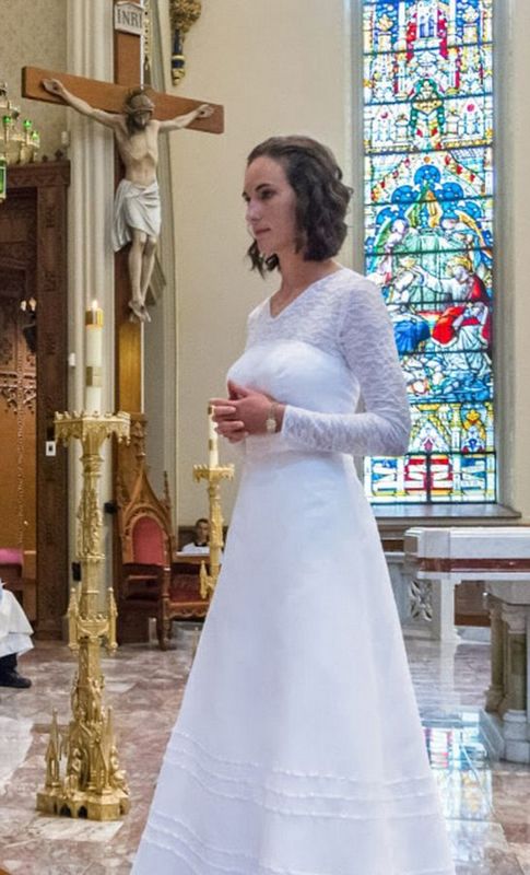 据悉,这名女子名叫杰西卡·海耶斯(Jessica Hayes),家住印第安纳州韦恩堡,是一所高中的神学教师。多年来,她一直虔心向耶稣祷告并进行自我反省,最终决心成为一名“神圣处女”,即与耶稣结婚并承诺终生禁欲。