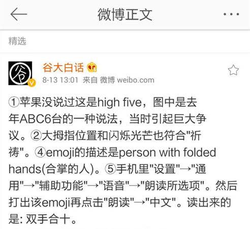 表情符引来不少争议,有人用它表达自己祈祝平安的心情,也有学霸提醒这个词表示击掌欢呼。