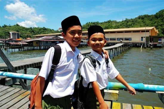 在艾尔水村(Kampung Ayer)遇到放学的文莱儿童,这个严格的伊斯兰教国家,富裕的生活让这里每一个人脸上都有洋溢着幸福与知足的神采。