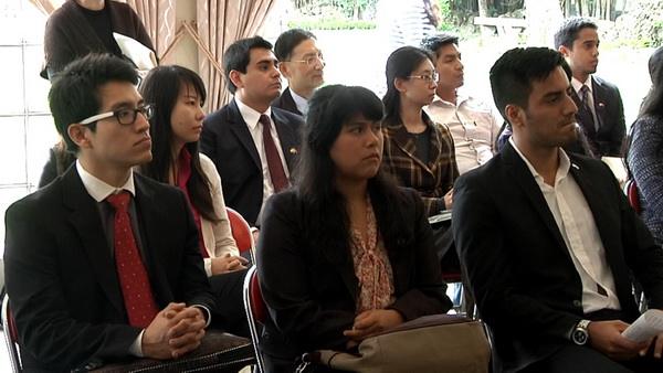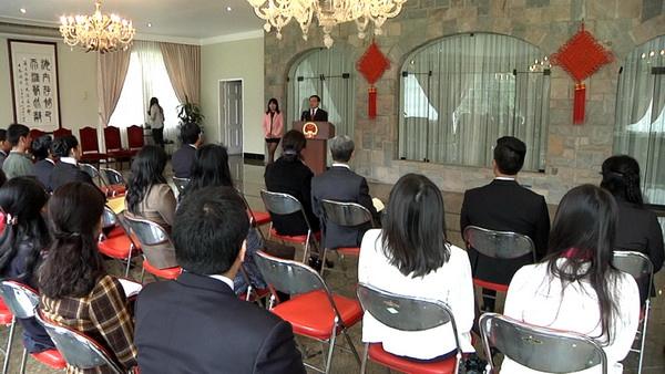 这是中国使馆多年来首次为新老留华秘鲁学生举办交流会。上午11时许,这些充满朝气的年轻人陆续来到驻秘鲁使馆,受到中国驻秘鲁大使贾桂德和使馆外交官的热情欢迎。
