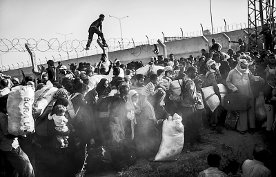 在与叙利亚接壤的土耳其桑利乌尔法省的阿克恰卡莱,叙利亚难民突破边境线上设立的铁丝网,进入土耳其。据新华社