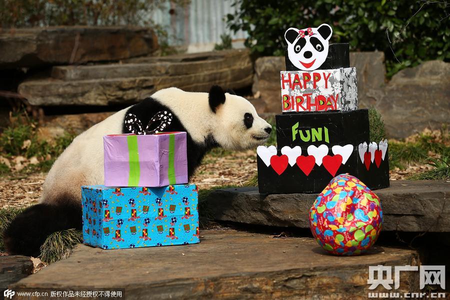 熊猫福妮庆祝9岁生日 拆礼物萌倒众人【组图】