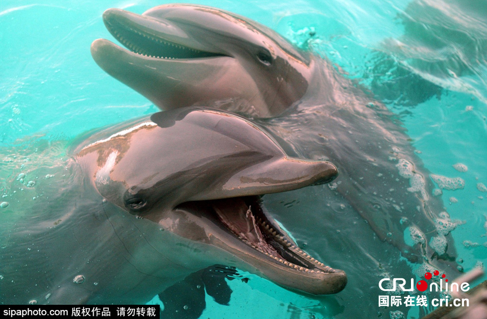 2015年8月22日消息,美洲巴哈马群岛,海豚天堂,可爱海豚卖萌表演引游客关注。图片来源:Sipa Photo