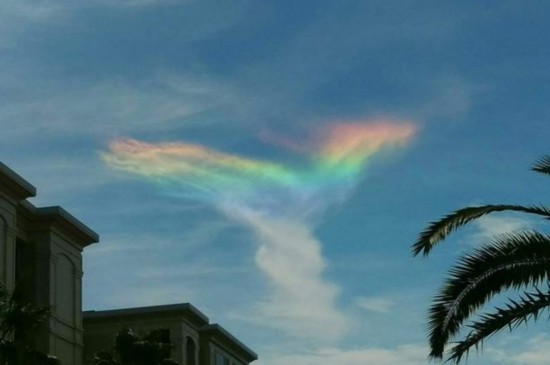 国际在线专稿:据英国《镜报》8月20日报道,上周日在美国南卡罗来纳州的棕榈岛,一个凤凰展翅高飞样子的彩虹出现在天空,持续了近一个小时之久,引得人们拍照留念。