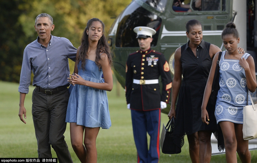 奥巴马全家结束度假返白宫 与女儿一路上有说有笑(高清组图)