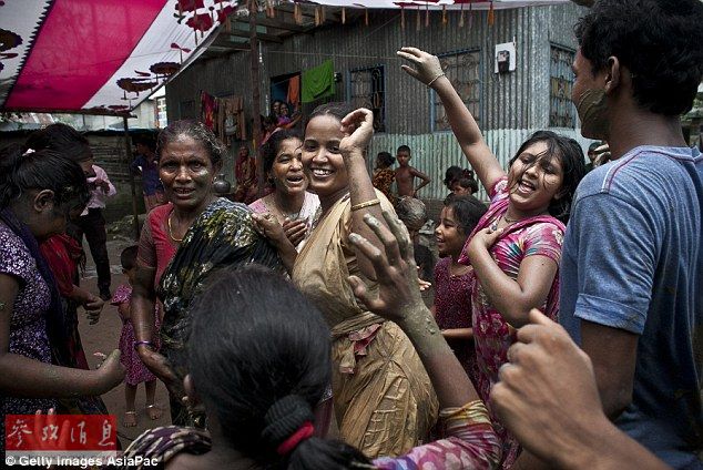 与新娘的愁容相反的是,亲戚们正在热闹的庆祝着这场婚礼。