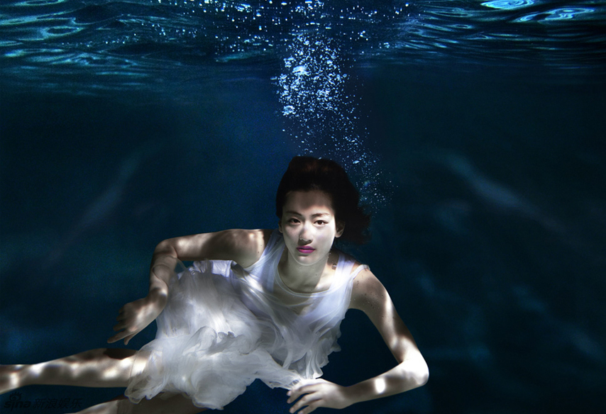 日本女星绫濑遥海底写真:红裙嫩肤似美人鱼(组图)