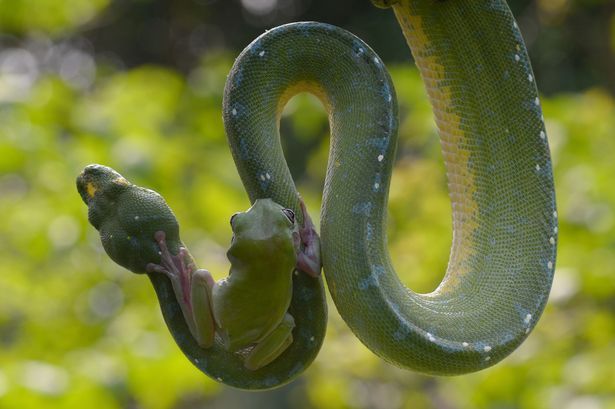 摄影师在印尼捕捉到树蛙“与蛇共舞”惊险画面(高清组图)