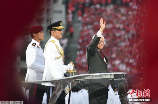 8月9日,新加坡举行金禧国庆庆典,庆祝独立50周年。图为新加坡总统向民众致意。