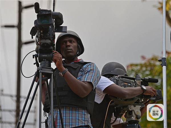图为一名记者工作时穿防弹背心、戴头盔(资料图片)