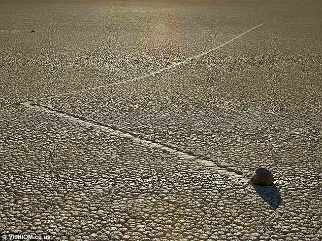 在美国死亡谷存在着一个奇怪的现象:谷底的巨大石块会自行缓慢移动,从而在干涸的湖床上留一道长长的轨迹。
